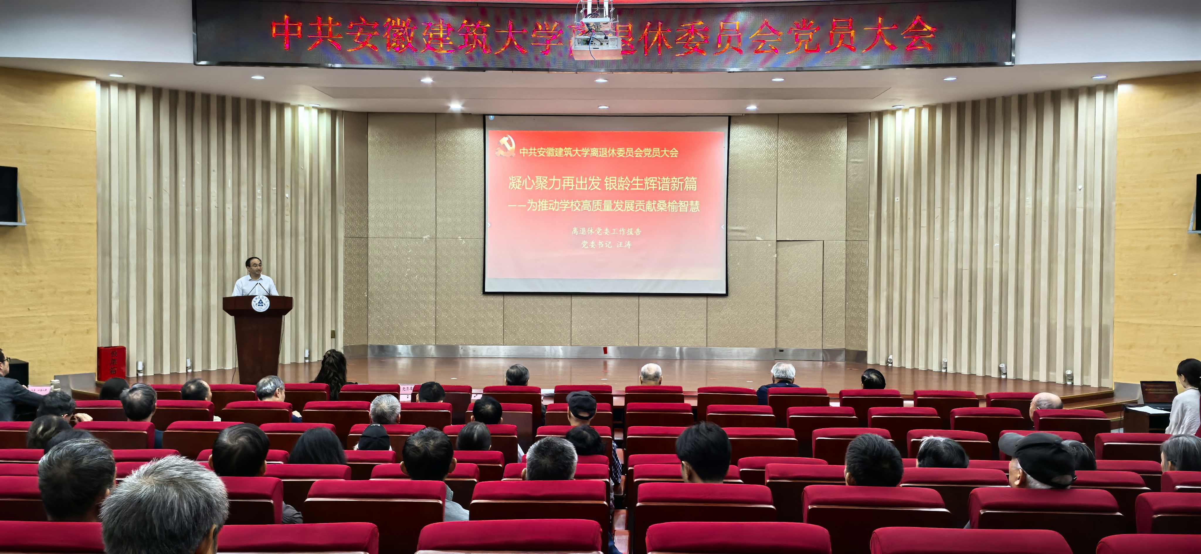 本网讯2025年9月24日下午,中共安徽建筑大学离退休委员会换届选举党员大会在北校区图书馆二楼报告厅隆重召开,会议由上一届离退休党委书记汪涛主持。