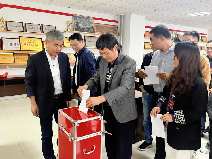 在第二次全体会议上,学院与会教代表举手表决通过《关于学院工作报告的决议(草案)》《关于分工会工作报告决议(草案)》,选举产生了学院第一届教职工代表大会执委会委员。