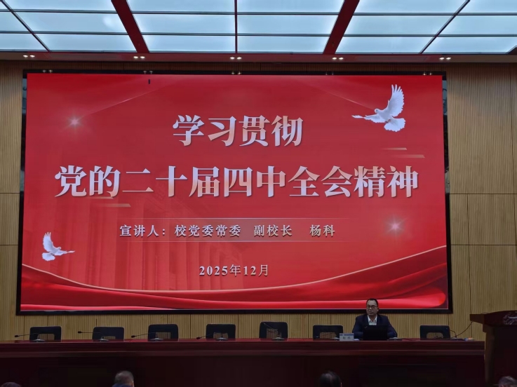 围绕党的二十届四中全会精神的核心要义,杨科从“准确把握‘十五五’时期在基本实现社会主义现代化进程中的重要地位”“深刻领会‘十五五’时期经济社会发展的指导方针和主要目标”“全面理解‘十五五’时期经济社会发展的战略任务和重大举措” “深入学习贯彻全会关于教育改革发展的新部署新要求”四个维度进行了系统阐释和深入解读。