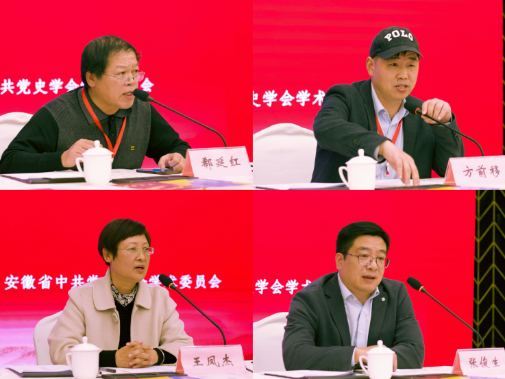 研讨会聚焦安徽党史上的重大事件与重要人物、安徽党史资源的挖掘与保护利用、新时代背景下党史研究的学术创新与方法革新、安徽党史与区域现代化建设及乡村振兴间的内在关联、党史资源数字化传播与新媒体应用五大议题,十位党史领域研究专家先后作重点发言。安徽省中共党史学会常务副会长、淮南师范学院吴玉才教授从激活高校党史人才队伍、强化高校党的政治建设、挖掘地方党史资源等方面来阐述了发挥高校党史优势,探索党史研究和教育的新路径。安徽省中共党史学会副会长、合肥工业大学陈殿林教授从社会背景、思想传播、组织基础等维度介绍了团队关于马克思主义在安徽早期传播有关情况的最新研究成果。中国科技大学钱斌教授提出了做好党史教育所应具备的底气、情怀和方法,指出了红色口述史在党史教育中的独特价值,并分享口述历史的系列成果。安徽金寨干部学院胡遵远教授以金寨县为例,提出通过提高认识、深化研究、打造传承高地、做亮品牌、完善顶层设计、成立专门机构、壮大研究队伍、强化资金保障等举措,确保红色资源的开发、利用与传承工作落到实处,为地方高质量发展提供持续动力。中共池州市委党史和地方志研究室副主任李运动认为,抓典型、擦亮牌子是做好党史资源开发与利用的重要一环。黄山市委党校副教授郗延红认为,应从健全机制、加强引导,纳入发展战略等方面来挖掘保护和活化利用皖南山地红色资源。安徽工程大学方前移教授结合红色文化研究智库平台的研究成果,多维阐释了党史研究学术创新与乡村振兴之间的内在关联。安徽科技学院王凤杰教授以自己在学术研究和教学实践中遇到一些问题为思考起点,引入“他者”视角,深度分析了党史研究的基本问题。安庆师范大学副教授张俊生着眼安徽拥有丰富的红色文化资源,从注重思想引领、内容创新、载体创新、融合发展和机制创新等方面提出了推动安徽红色文化资源创造性转化和创新性发展的思考路径。安徽建筑大学张亮教授结合自身多年研究,提出应该加强对新中国史与改革开放史的学术研究,将历史研究和文化遗产研究结合起来,进一步加强淠史杭红色水利文化的开发。