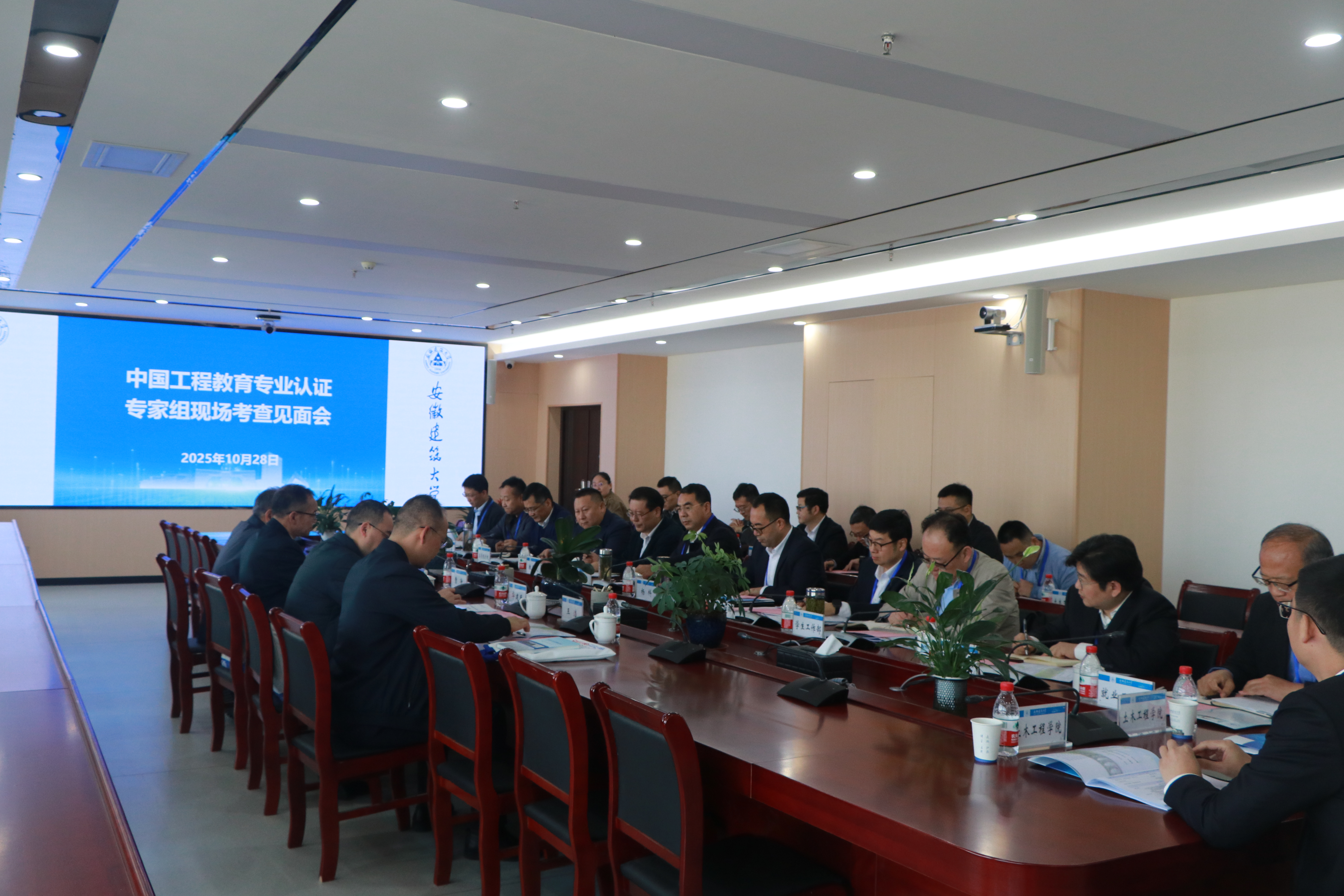 本网讯 10月28日至29日,受中国工程教育专业认证协会委托,以昆明理工大学曹净教授为组长,重庆设计院有限公司邓小华教授级高工、重庆大学土木工程学院华建民教授为组员,西安理工大学王浩老师担任秘书的专家组一行4人莅临安徽建筑大学,对我校土木工程专业工程教育认证工作进行现场考查。 10月28日上午,土木工程专业认证现场考查专家见面会在紫云路校区徽风楼1506会议室召开,学校党委副书记、校长蔡国军,党委常委、副校长杨科,相关职能部门负责人、土木工程学院师生代表参加专家见面会。会议由杨科主持。