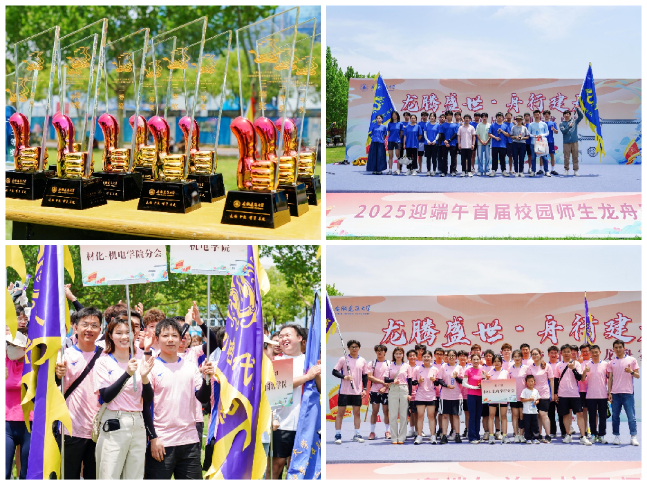 本届龙舟赛共有23支代表队、近400名师生参与角逐。经过激烈比拼,在学生组200米直道赛中,电信学院、机电学院获得一等奖;安职院、环能学院、材化学院获得二等奖;公管学院、建规学院、外国语学院、土木学院、艺术学院、经管学院、数理学院、国际教育学院获得三等奖。在教工组200米直道赛中,后勤分会、材化-机电学院分会获得一等奖;土木学院分会、电信-数理学院分会、机关分工会获得二等奖;环能学院分会、艺术学院分会、建规学院分会、公管学院分会、经管学院分会获得三等奖。在教工组拔河赛中,土木学院分会、环能学院分会获得一等奖;艺术学院分会、公管学院分会、材化-机电学院分会获得二等奖;建规学院分会、电信-数理学院分会、经管学院分会、机关分工会、后勤分会获得三等奖。