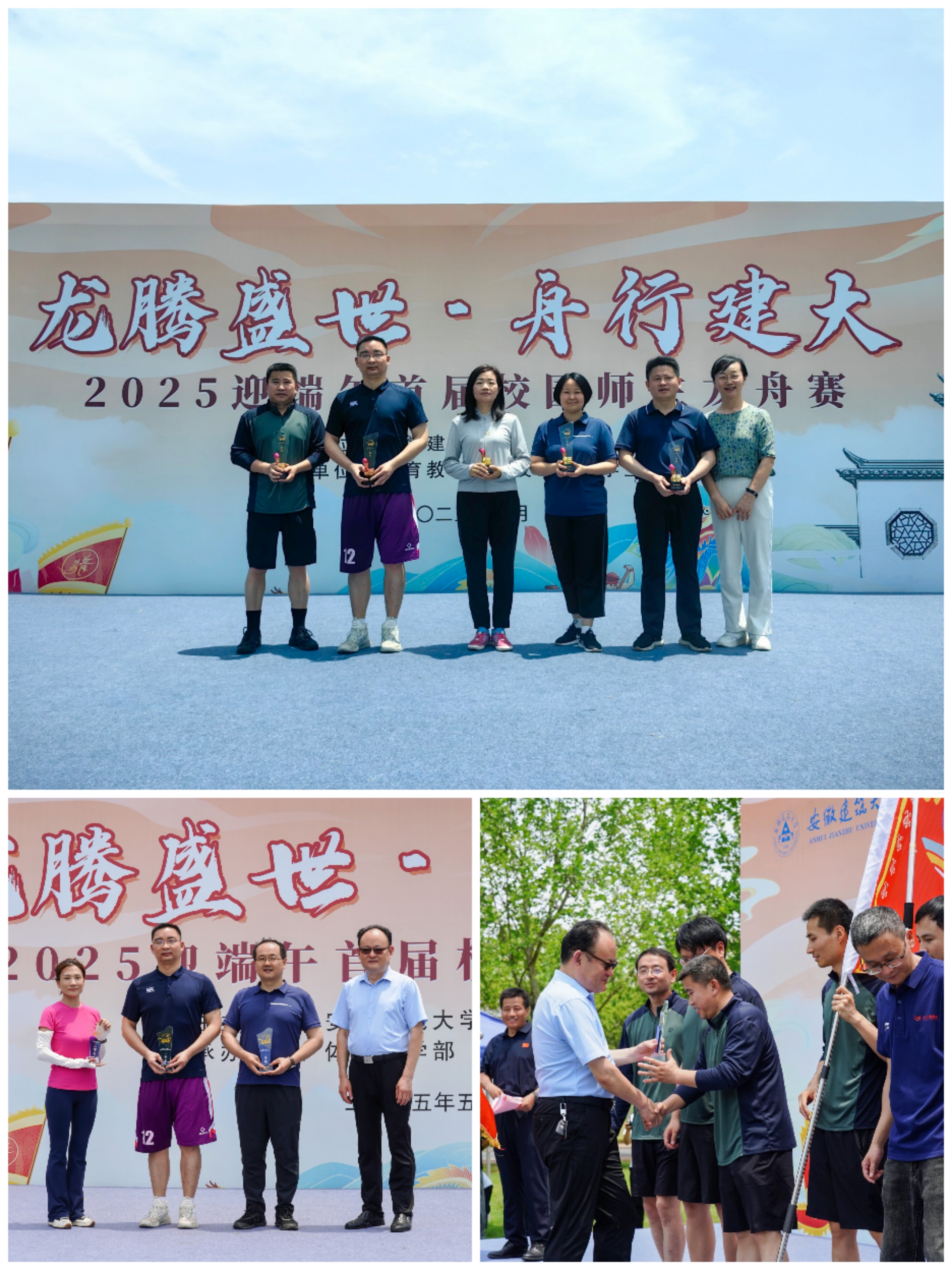 习近平总书记强调:“体育是提高人民健康水平的重要途径,是满足人民群众对美好生活向往、促进人的全面发展的重要手段,是促进经济社会发展的重要动力,是展示国家文化软实力的重要平台。”学校始终坚持以习近平新时代中国特色社会主义思想为指导,深入学习贯彻习近平总书记关于教育、体育的重要论述,坚持五育并举,落实立德树人,强化特色发展,以“体教融合”作为厚植学生体育发展土壤,探索更好开展大学体育运动的方法和路径,促进群众体育和竞技体育协调发展,逐渐形成了独具建大特色“体教融合”育人体系和系列品牌体育活动。本次比赛不仅是传承中华传统文化的盛事,更是展现建大师生团结拼搏精神的舞台,践行“五育并举”育人理念的重要实践。建大龙舟健儿们以桨为媒、以湖为台,在竞渡中书写团结拼搏的青春篇章,为校园文化增添了浓墨重彩的一笔!(图/文:校融媒体中心、赵灿、丁笑梅、许敏、汪菊培、冯亚林;一审:邢栋;二审:杜卫提;三审:徐飞)