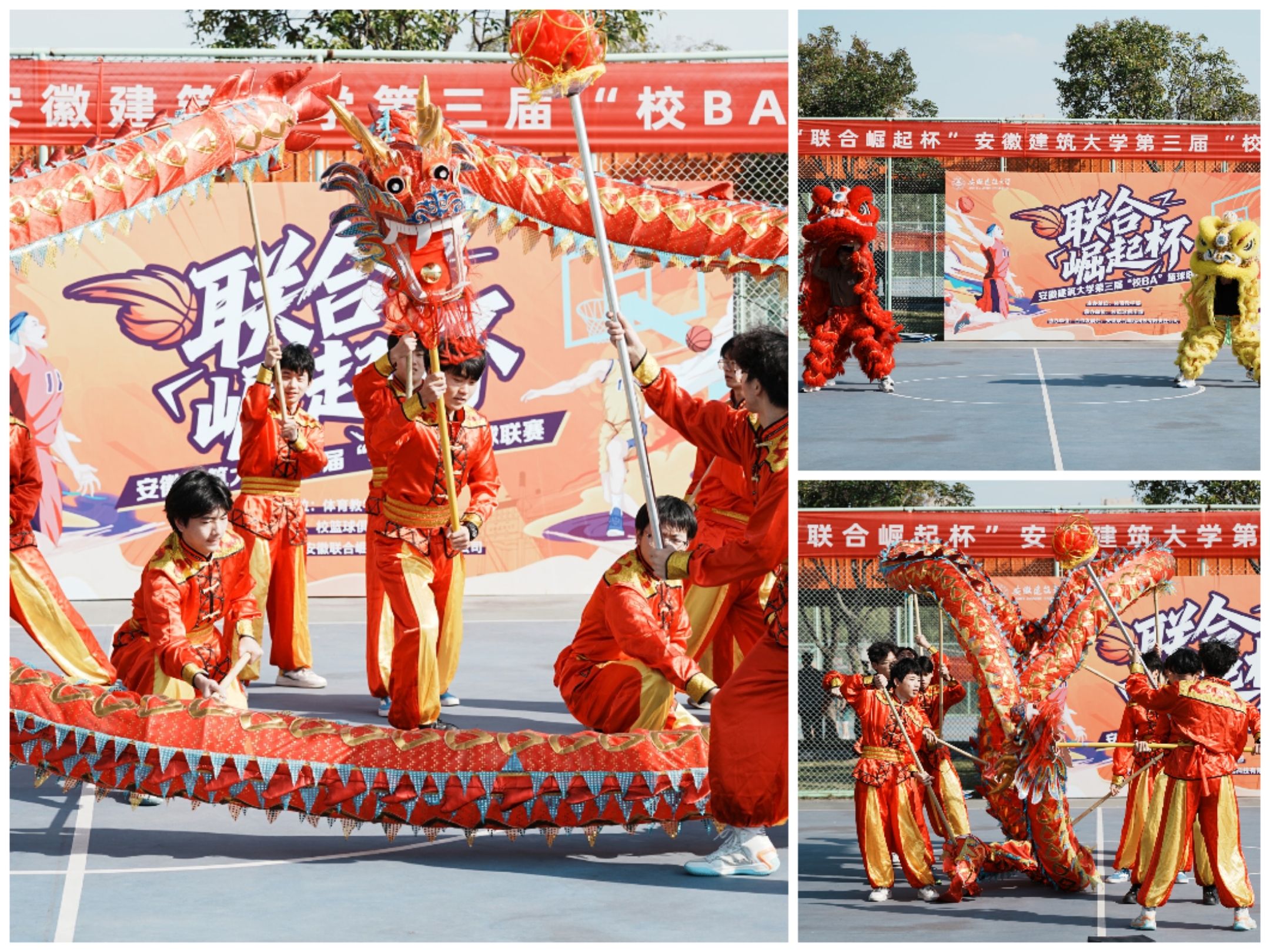 秋高气爽,晴空万里。伴随铿锵鼓点,校舞龙舞狮俱乐部的同学们翻腾跃动,龙须迎风、狮尾生风,为即将打响的篮球联赛点燃火热气氛。国旗班队员步履铿锵,护送五星红旗踏过中场,全场肃立,雄壮的国歌声响起,庄严肃穆,青春的赛场在这一刻与家国同辉。