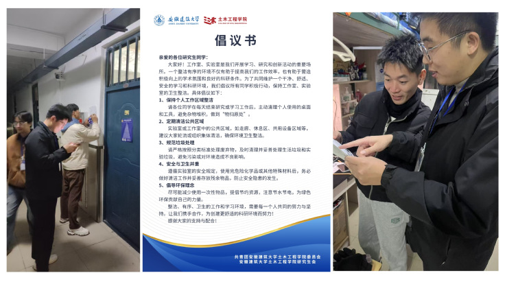 开展“思想引领,铸魂育人”系列活动。以“强国复兴有我”为主题,开展主题征文活动;以“为中国式现代化挺膺担当”为主题,开展研究生专题学习活动;以“温暖有光,筑牢安全防线”为主题,开展签署营造整洁有序工位环境倡议书,做好寝室、工位秩序日常检查,发放安全手册,普及安全知识活动。引领土木青年学子坚定信心、振奋精神,朝着强国建设、民族复兴奋楫笃行。