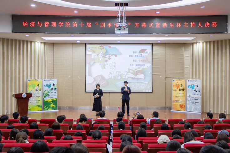 本网讯 4月23日,正值第30个世界读书日。为营造浓厚的书香氛围,在四季更迭中领略阅读的魅力。安徽建筑大学经济与管理学院第十届“四季悦读”书香校园文化节开幕式于安徽建筑大学金寨路校区图书馆二楼报告厅隆重举行。学院领导班子、教师代表和200余名学生现场参与活动。