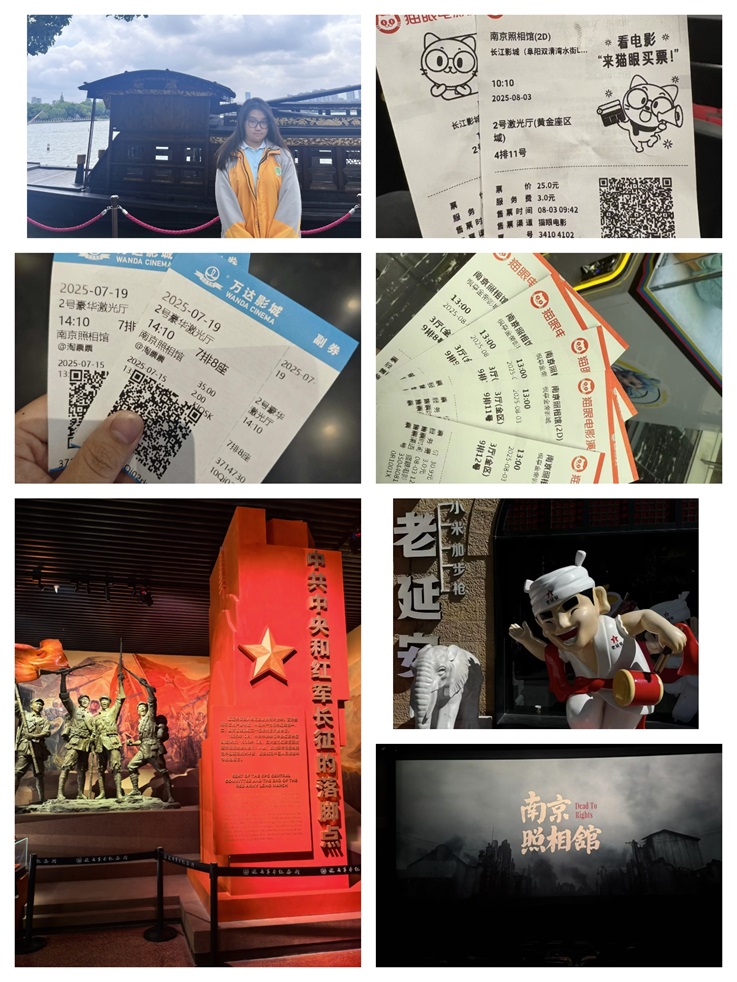 爱国主义教育,是新生入学教育中不可或缺的精神底色。为纪念中国人民抗日战争暨世界反法西斯战争胜利80周年,学院组织新生与家人共同观看庄严而盛大的阅兵仪式,共同铭记历史、缅怀先烈,共同感受祖国的蓬勃力量与繁荣气象。在此前,诸多新生也踏上寻访红色足迹的旅程,25级英语3班的章雅琳在延安革命纪念馆参观瞻仰,25级英语2班的谢鑫怡同学伫立在南湖红船前感受历史的厚重与沉静。此外,新生们还纷纷走进影院,观看《南京照相馆》等影视作品,留存的电影票根、真挚的观后感悟,成为他们传递爱国情感的鲜活印记,红色的血脉在这一代青年身上延续,青春的力量正与时代同频共振。