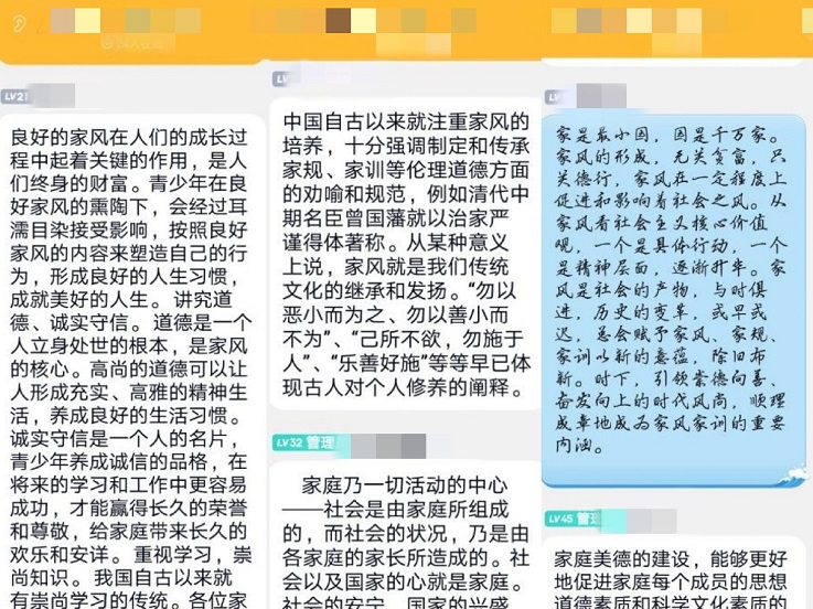 本次主题以“话初心、讲家风、见行动”为线索,结合实际,立足当下,层层递进,现场班会通过“毛泽东家风”的故事引入;接着高年级学生代表畅谈对家风的认知与师生分享互动;最后辅导员进行总结,鼓励学生参与到制定班规班训、宿舍规章制度的活动中来,会后,各班学生通过线上再次分享了对家风的认识和感悟,进一步深化主题。
