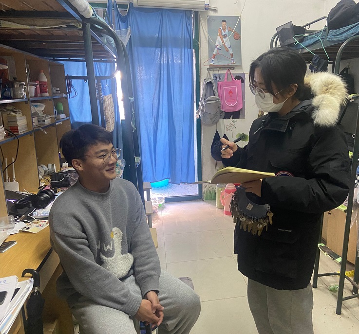 12月31日,辅导员走访了所有学生宿舍,深入开展安全教育,对家庭困难学生和心理问题学生进行一对一交流和关心。详细了解每位学生假期安排,提醒大家注意宿舍用电安全,往返途中安全,建议学生和家人欢聚团圆的同时,利用假期开展学业规划和考研规划。毕业班学生要抓住择业就业的黄金时期,多留意就业信息,做好就业准备。在宿舍中,辅导员对学生们的假期疫情防控事宜进行了重点提醒。 (作者:洪宇辰;审核:汪令宇)