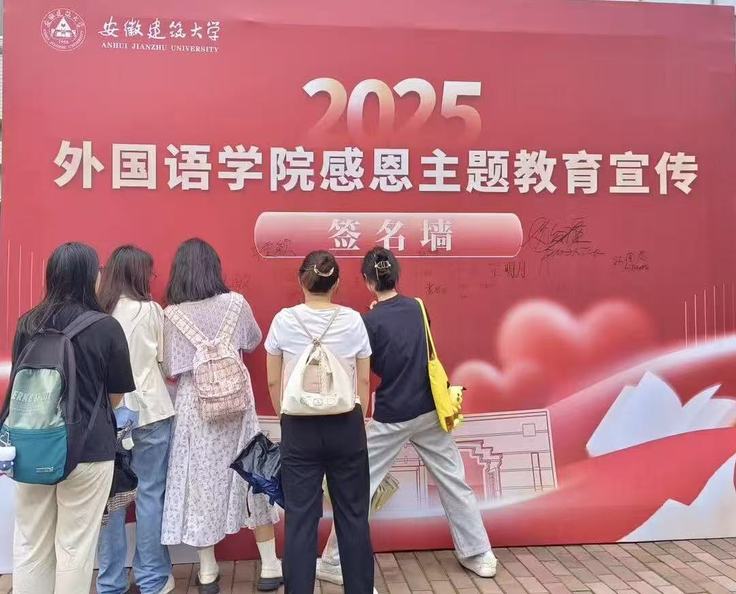 为引导学生将感恩之情转化为具象表达,让“感恩于心、回馈于行”的理念深入人心,6月19日,外国语学院在北食堂门前设感恩育人签名墙。受助学生们有序排队签名,手持签字笔郑重写下自己的名字与感恩寄语:“感谢国家资助,让我能安心追逐学术梦想!”“以青春之力回馈社会,不负每份关怀!”。值得一提的是,不少非受助学生深受感染,主动参与其中,在签名墙写下“感恩不分你我”“与爱同行”等暖心话语。短短一上午,3米多长的签名墙便布满了密密麻麻的签名与寄语,每一笔都承载着青春的温度与成长的力量,更让“感恩”“珍惜”的种子在学生心中悄然扎根。