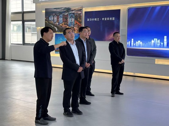 会后,蔡国军带队赴G60松江·中安科创园项目开展考察、调研。上海裕安投资集团有限公司党委委员、总经理陈晓诰热情接待了调研组一行。陈晓诰对蔡国军一行来访表示热烈欢迎,并简要介绍了G60松江·中安科创园项目的建设与发展情况。