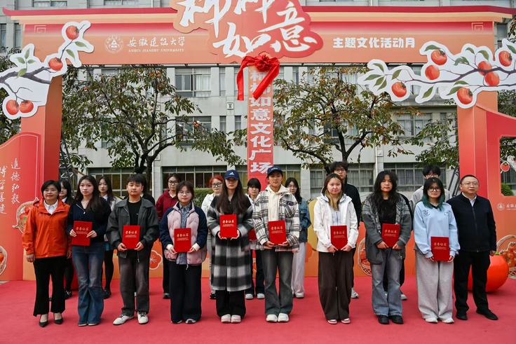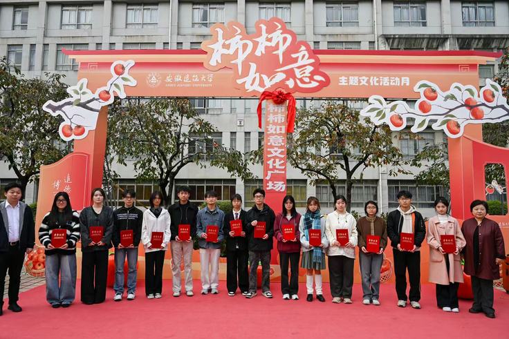 本网讯 秋意正浓,红柿盈枝。安徽建筑大学“柿柿如意”文化活动月之柿子文创设计比赛圆满落下帷幕,在紫云路校区“柿柿如意”文化广场举办了优秀作品展览和颁奖典礼。校党委副书记、校长蔡国军,校党委常委、副校长李早,校党委常委、副校长高跃峰亲临现场,与全校师生共同见证这场创意与艺术碰撞的校园盛会。