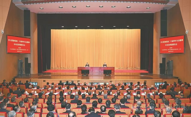 会上,雷海潮紧紧围绕学习贯彻习近平总书记在党的二十届四中全会上的重要讲话精神和全会《建议》,从深刻认识全会召开的重大意义,准确把握“十五五”时期的重要地位和形势判断,深入领会“十五五”时期经济社会发展的指导方针、主要目标、战略任务和重大举措,坚持和加强党的领导等方面,结合安徽实际作了深入宣讲,并阐释了贯彻全会关于加快建设健康中国、促进人口高质量发展决策部署的工作要求。他强调,要把学习贯彻全会精神同学习领会习近平新时代中国特色社会主义思想贯通起来,同贯彻落实习近平总书记考察安徽重要讲话精神结合起来,开拓创新、砥砺前行,在中国式现代化伟大实践中奋勇争先。