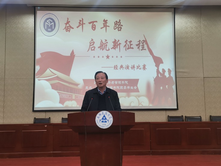 本网讯 为回顾中国共产党一百年光辉历史,弘扬伟大建党精神,强化青年使命担当,12月10日,经管学院在北区图书馆二楼报告厅举办“奋斗百年路,启航新征程”演讲比赛。校领导蔡新立和学院党政领导共同观看了本次活动。