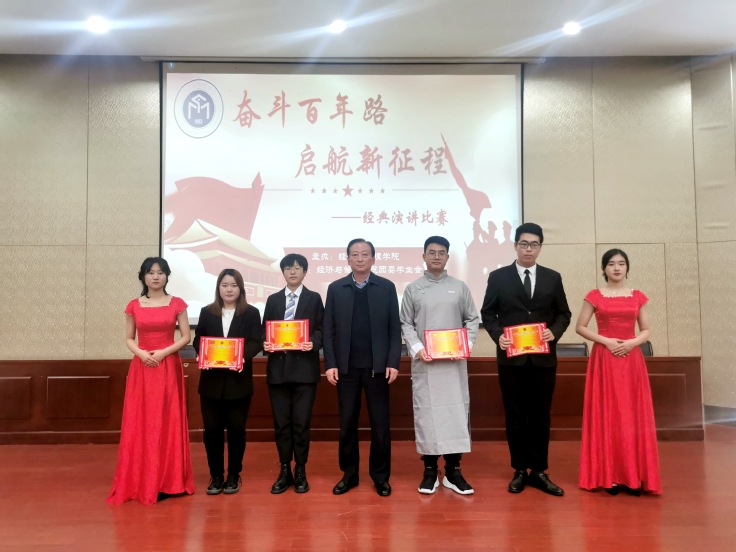 蔡新立高度肯定和赞扬了本次活动的充足准备和精彩的表现效果,体现了满满的正能量,同时提醒广大青年学子勿忘昨日的苦难辉煌,应当树立责任意识,将“请党放心,强国有我”的担当牢记心间,以史为鉴,勤奋学习,争做新时代有为青年,而后蔡校长为获奖同学颁奖并合影留念。