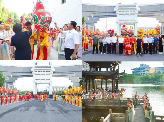 今年,学校首次推出“艺启新程·美育筑梦”大型迎新游园会,给全校学生带来一场建大文化-徽文化-江南文化的视觉盛宴、领略古徽州水口园林的千载风韵,感受工科大学的不一样魅力。本次活动共分三个单元内容。一是东风更放花千树。包括傩戏面具、木刻版画、绒花、民俗服饰等徽州传统工艺品非遗文创展示;大幅藤编、大型鱼灯、大型剪纸等传统艺术作品展;书法、国画、葫芦刻画等手工艺作品展。二是玉壶光转舞鱼龙。在热闹的锣鼓声中,鱼灯巡游、轩辕滚车、舞龙舞狮从光启堂出发,最后汇聚日月广场。三是九天钧乐奏云韶。巡游队伍在日月广场汇合时,开展安徽传统地方戏剧——黄梅戏展演,演出《天仙配》《女驸马》等知名唱段。当晚,紫云路校区环湖及各楼宇景观灯全部开启,登临九月桥,看九月映波奇观、兰亭修禊,看易海湖光,天鹅嬉戏,白鹭回翔,更有源自皖南泾县桃花潭镇龙潭村的徽式龙舟竞渡活动,整个校园沉浸在欢乐的气氛中。