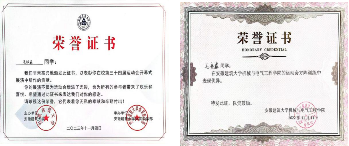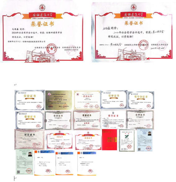 翻开他的成绩单,那一连串接近满分的数字令人惊叹不已:高等数学(A2)99分,线性代数100分,理论力学100分,概率论与数理统计97分……这些耀眼的成绩背后,是他无数个日夜的努力与坚持。为了攻克一道难题,他常常在图书馆一坐就是几个小时,反复推导公式,查阅资料,不放过任何一个细节。凭借这份执着与努力,他连续三年荣获校奖学金,还斩获了黄山奖学金、安徽四建奖学金,并获评“三好学生”称号。
