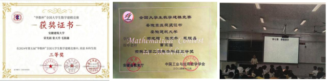 数学建模竞赛则是他锻炼思维与协作的战场。从校赛、省赛到“华数杯”国赛,每一次比赛都是一次挑战与成长。他与队友们一起,熬夜分析数据,激烈讨论方案,调试代码。在那些紧张而充实的日子里,他们的思维不断碰撞出智慧的火花,彼此扶持,共同进步。即便在获奖难度极高的统计建模竞赛中,面对繁重的课业压力,他依然选择坚持。因为他知道,比结果更珍贵的,是那些共同奋战、彼此支撑的日夜,是在这个过程中所收获的知识、友谊和成长。