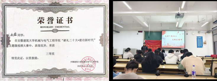 回首成长之路,毛银鑫心中充满了对母校安徽建筑大学的深深感恩之情。在这里,“进德、弘毅、博学、善建”的校训精神如同一盏明灯,照亮了他前行的道路,滋养着他的品格;老师们的悉心指导与言传身教,如同春风化雨,为他奠定了扎实的专业基础;学校提供的先进实验室、丰富的创新平台以及多样的竞赛机会,如同肥沃的土壤,让他的想法得以实践、能力得以锤炼。