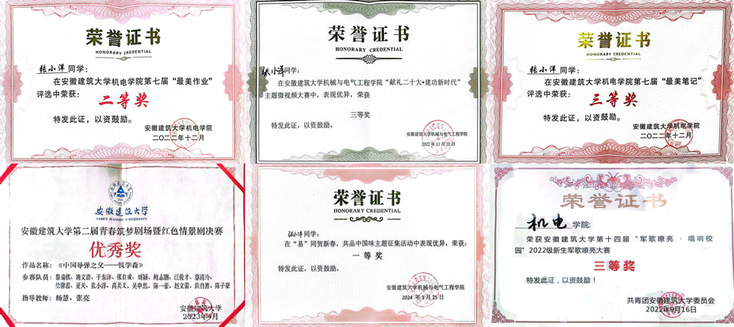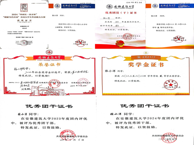 凭借优异的成绩,她先后斩获2022—2023学年校一等奖学金、2022—2023学年苏州建工社会奖学金、2024-2025学年国家励志奖学金等多项荣誉,多次获评“三好学生”“优秀团干”,为后续成功保研打下了坚实的基础。