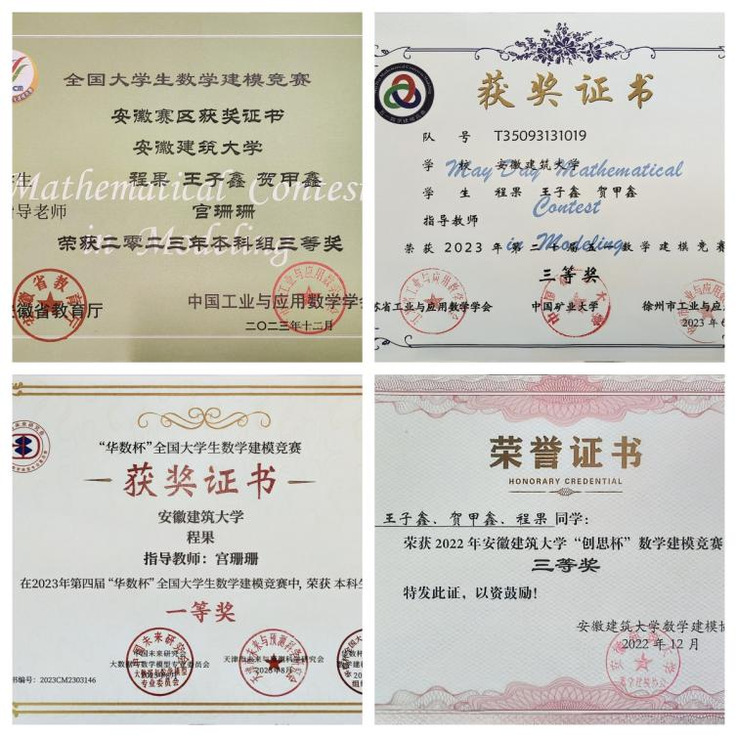 程果,安徽建筑大学机械与电气工程学院测控技术与仪器专业本科生,连续三年获得国家励志奖学金,荣获校三好学生,校二等奖学金等荣誉。在校期间,平均GPA成绩专业第一,其中《传感器原理》98分、《测试信号分析与处理》97分,《单片机接口技术》92分、《测控电路》91分等多门专业课获得90+的成绩,在学科竞赛方面,曾获得第四届“华数杯”全国数学建模竞赛一等奖,2023年“高教社杯”全国大学生数学建模竞赛安徽省三等奖,第二十届五一数学建模竞赛三等奖,现已成功保研至重庆大学仪器科学与技术专业。