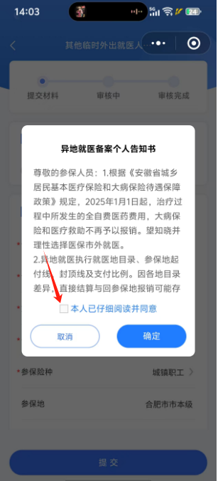 目前省级平台“安徽医保公共服务”中“其他临时外出就医人员”备案申请提交后由系统自动即时审核,无需人工审核,效率更高,且跨省住院直接结算时需校验存在本人异地就医备案,所以现提出以下温馨提示: