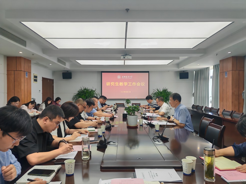 本网讯 9月19日上午,学校在南校区徽风楼21楼第三会议室召开2025年研究生教学工作会议。会议由校党委常委、副校长杨科主持,研究生培养单位负责人、教师发展中心负责人、校教学督导组组长、研究生院全体工作人员参加会议。