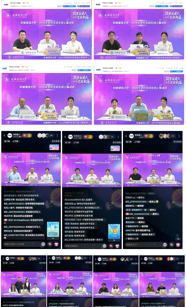 本网讯 为助力广大考生精准定位、高效备考,深度展现学校学科实力与育人特色,2025年9月22日至23日,安徽建筑大学成功举办以“筑梦安建大 研途启新篇”为主题的2026年研究生招生宣讲直播活动。