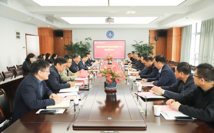 蔡国军代表学校对蚌埠学院张亚新院长一行的到访表示热烈欢迎,并重点介绍了我校在学科建设、师资队伍、科学研究及研究生培养等方面的成果与优势。他指出,支持蚌埠学院开展硕士研究生联合培养工作,是我校服务地方高等教育发展、推动优质教育资源共享的重要举措。学校将充分发挥学科平台和导师队伍优势,全力支持蚌埠学院提升人才培养层次,希望通过此次合作,共同探索高效务实的研究生联合培养路径,为区域经济社会发展输送更多高层次人才。