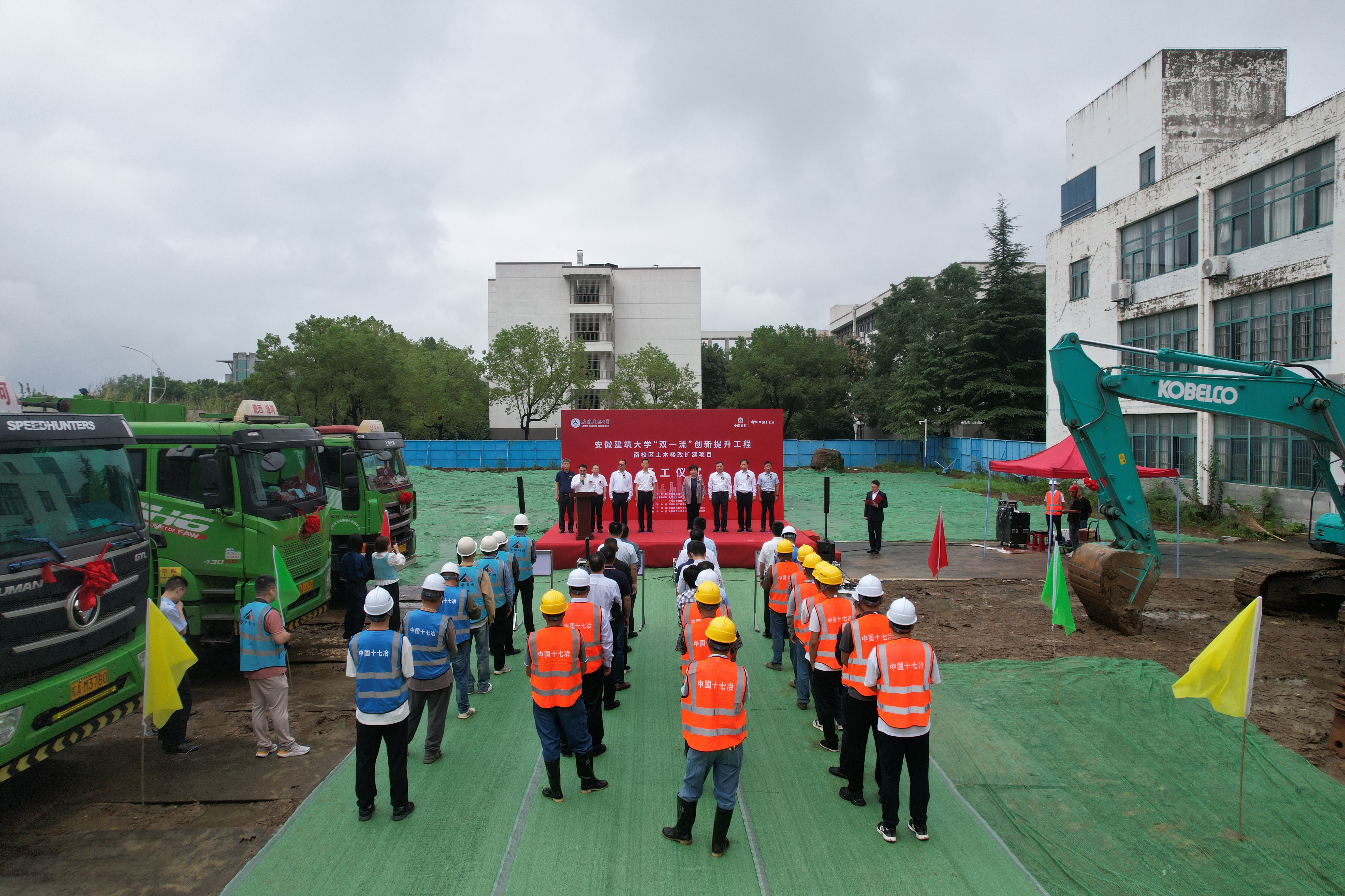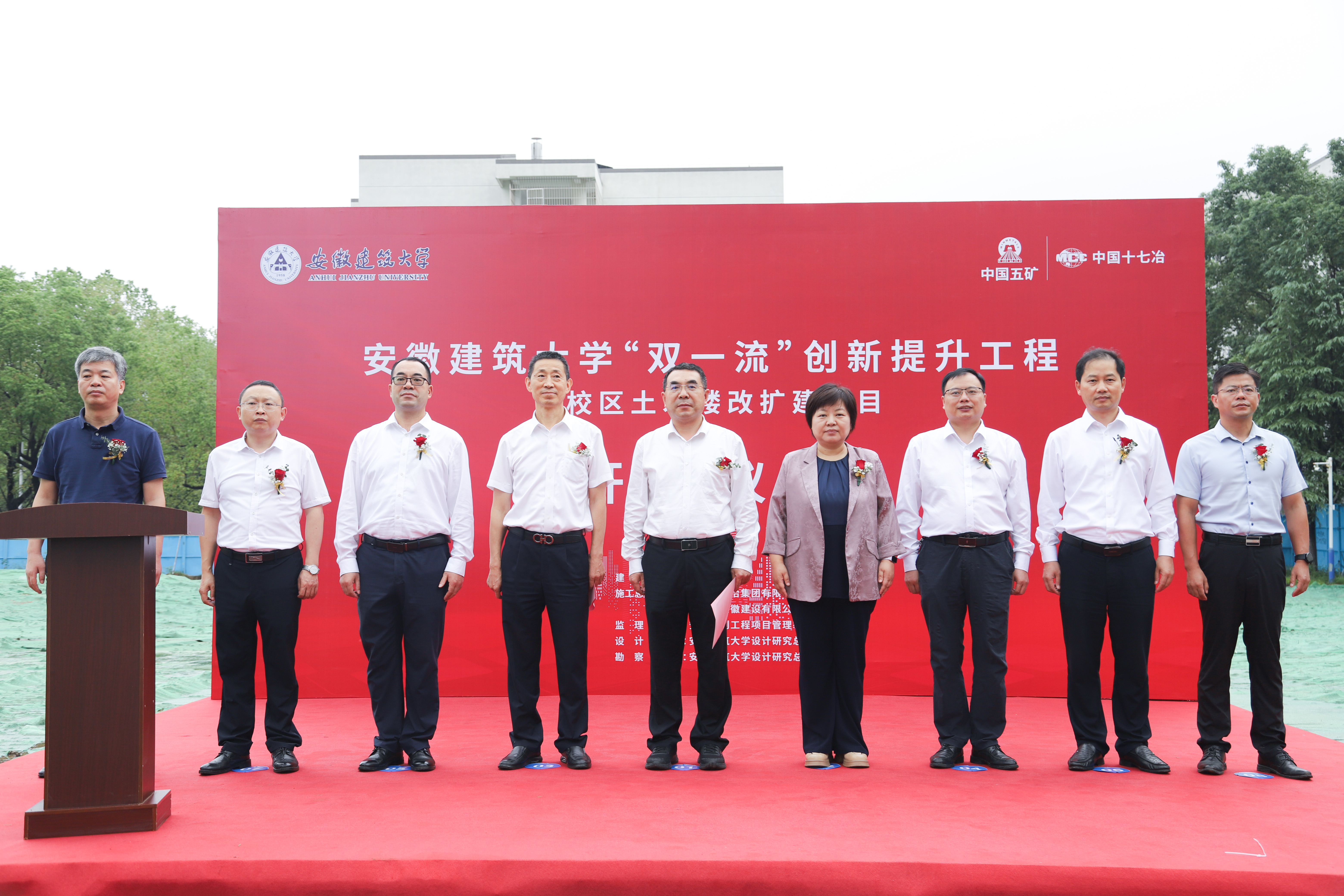 本网讯 930上午858分,南校区土木楼改扩建项目暨高频双台阵地震模拟平台配套实验室开工仪式在项目工地隆重举行!校党委副书记、校长蔡国军,校党委常委、副校长李早,校党委常委、副校长杨科,校党委常委、副校长王佐才,校党委常委、纪委书记黄多能,安徽建筑大学党委常委、副校长高跃峰,安徽建筑大学设计研究总院有限公司总经理曹宏伟、安徽科创工程项目管理有限公司党委书记、总经理杨晓飞,中国十七冶集团有限公司党委委员、副总经理伍昌国,十七冶安徽建设有限公司总经理舒明、校办公室、发展规划处、国有资产管理处(基建办)、保卫处、土木工程学院、信息网络中心、后勤管理处等相关负责人共同出席本次开工仪式。