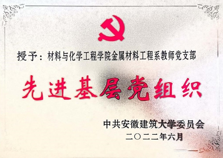 材化学院金属材料工程系教师党支部在学院党委的坚强领导下,充分发挥战斗堡垒作用,结合专业特色,将党建工作和业务工作紧密结合,以政治建设为统领,以组织建设为基础,以质量提升为抓手,党支部凝聚力、战斗力持续提升。2020年获批学校党建工作样板支部建设立项,围绕“教育党员有力、管理党员有力、监督党员有力、组织师生有力、宣传师生有力、凝聚师生有力、服务师生有力”的七项建设目标,不断提高教学科研水平和服务师生能力,着力打造一支党建和业务相互融合促进的队伍。2022年,支部通过学校第一批新时代党建示范创建和质量创优培育创建单位验收,荣获2022年学校“先进基层党组织”荣誉称号。