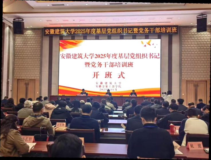 本网讯  11月13至15日,学校在安徽金寨干部学院成功举办2025年度基层党组织书记暨党务干部培训班,135名基层党委(党总支、直属党支部)、基层党支部书记,专兼职组织员,党委秘书参加学习培训。校党委副书记李早作开班式动员讲话,金寨县委常委、组织部部长缪亚涛致欢迎辞,金寨干部学院副院长吴继彩主持开班式。